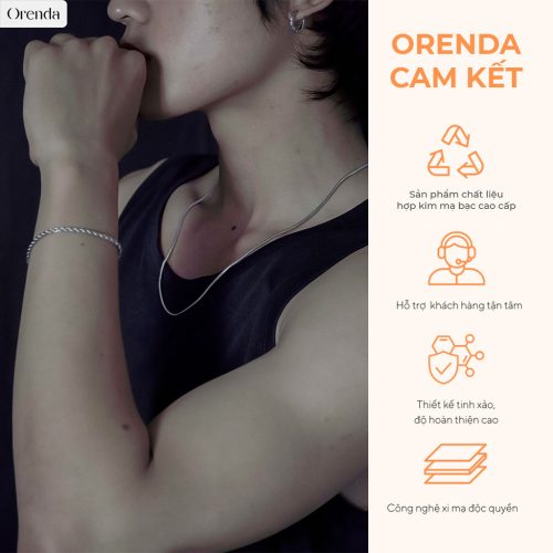 Chất liệu vượt trội: Được chế tác từ hợp kim mạ bạc cao cấp, dây chuyền Orenda đảm bảo bền đẹp và không gây kích ứng da. Chất liệu này không chỉ an toàn cho sức khỏe mà còn giữ được độ sáng bóng lâu dài, không bị xỉn màu theo thời gian.