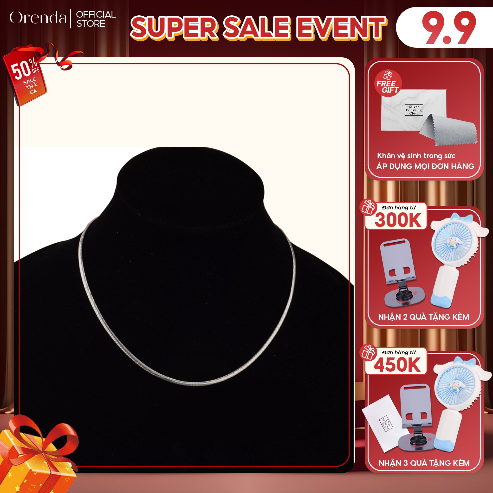 Dây chuyền bạc Orenda sáng bóng ánh bạc, dễ phối trang phục